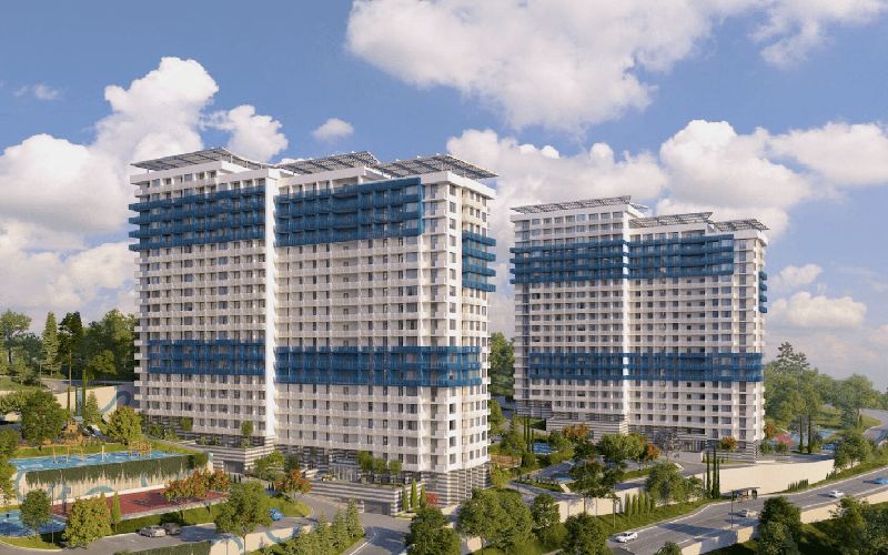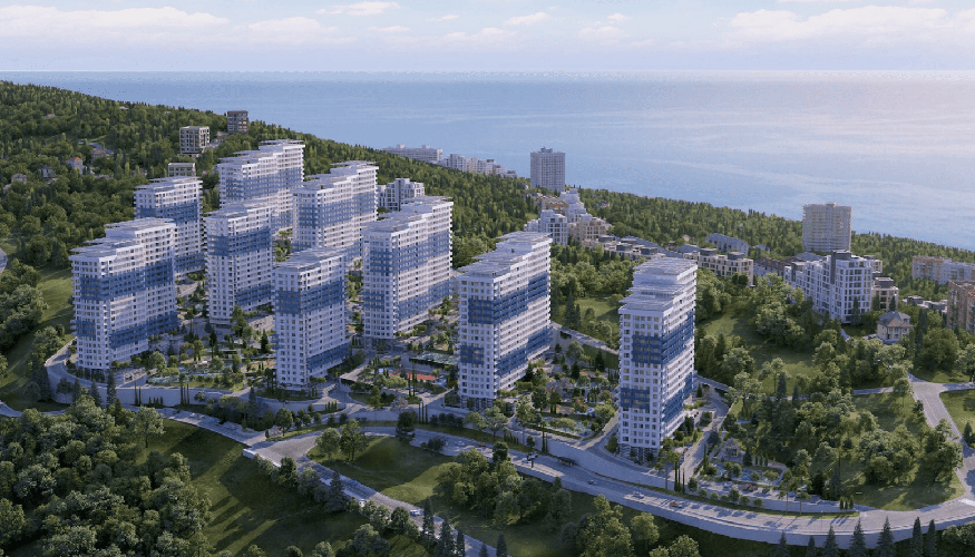 Дома расположены на склоне горы Бытха и это ещё один плюс к видовым характеристикам